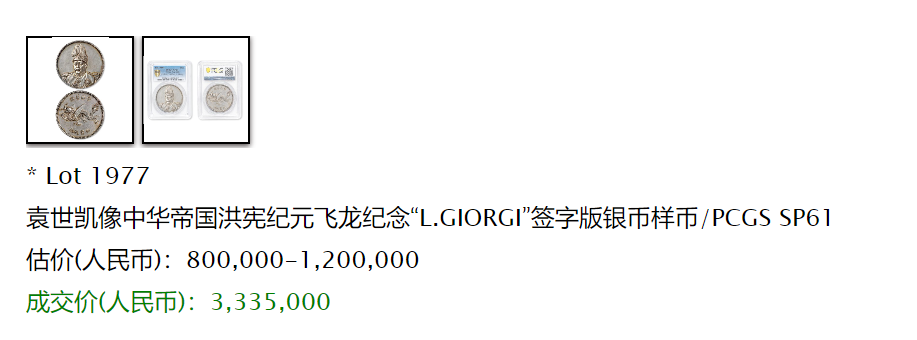 TOP4 袁世凯像中华帝国洪宪纪元飞龙纪念“L.GIORGI”签字版银币样币