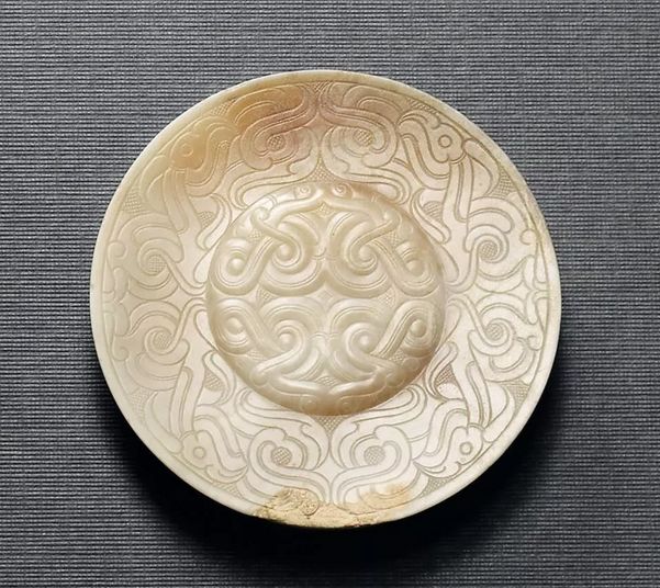 东汉 白玉乳丁螭虎瑞兽纹出廓璧(213万)