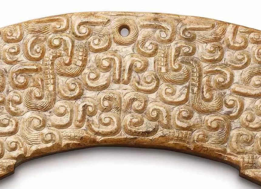 商晚期 灰玉龙纹璜(30万)