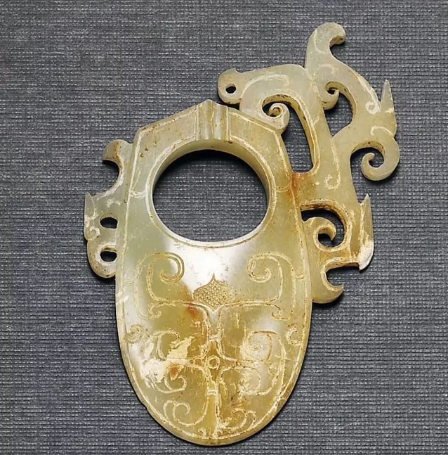 西汉 白玉龙纹韘形佩(35万)