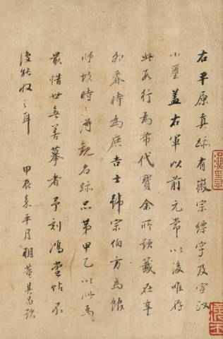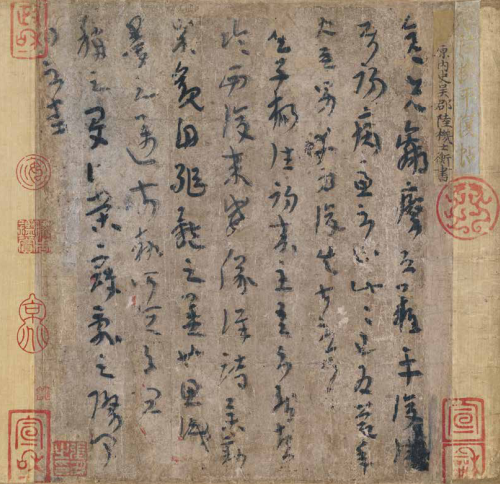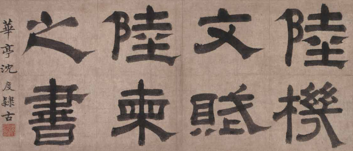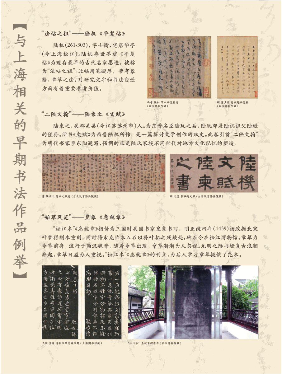 陆机(261-303),字士衡,宅居华亭(今上海松江)。陆机存世墨迹《平复帖》为现存最早的古代名家墨迹,被称为“法帖之祖”。此帖用笔凝厚,带有篆籀、章草之法,对研究文字和书法变迁方面有着重要参考价值。