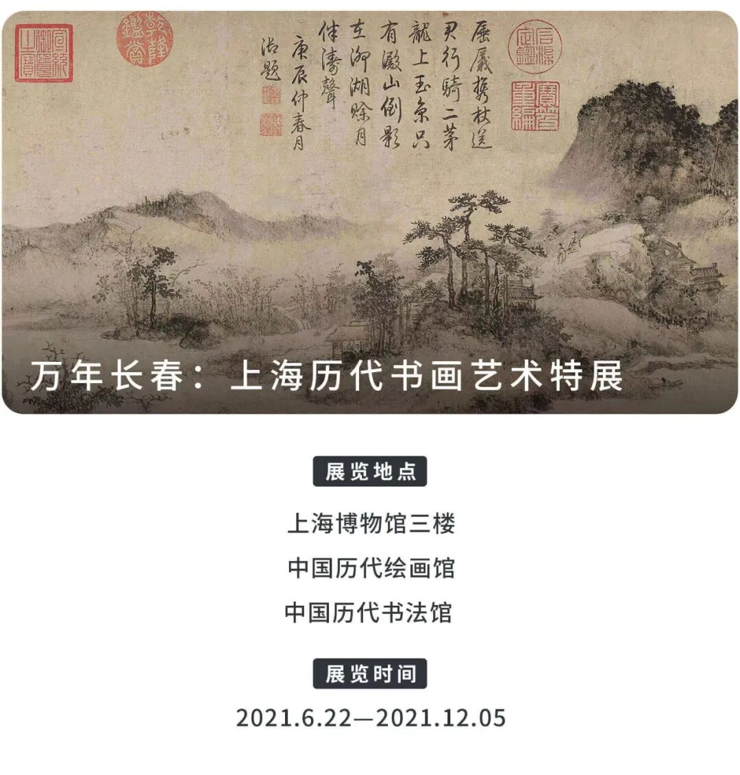 “万年长春:上海历代书画艺术特展”将于2021年12月5日闭幕。该展遴选相关书画146件(组),时间跨度从三国至现当代逾千余年,从学术视角对上海历代书画进行较为系统的研究,展现上海传统文化与城市精神脉络。