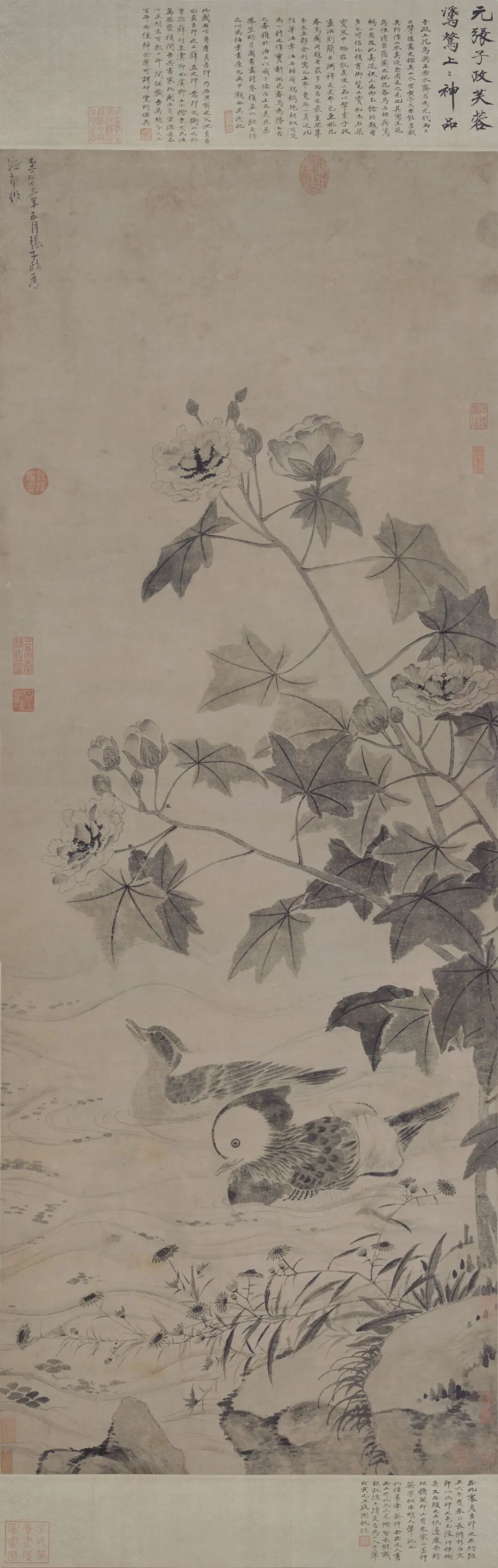 元代墨花墨禽的出现,标志着对两宋院体的巨大变革,以杭州王渊为个中先导,继由上海张中发扬,为 “元代两大巨擘”,皆为开启以沈周为代表的明清水墨花鸟画变革之关键。张中,活动于至元、至正(1335-1368)间,松江乌泥泾(今上海徐汇)人。