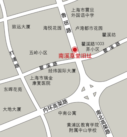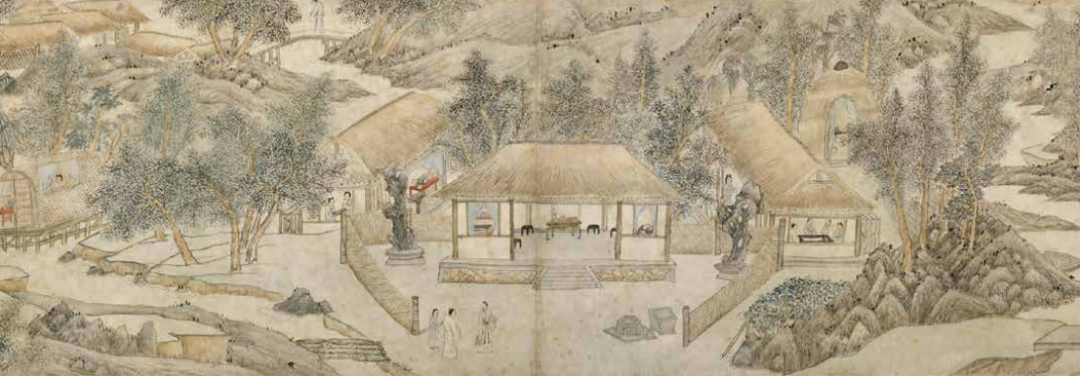 图中南溪草堂为海上顾氏所建园林,顾氏以收藏名闻海内。今黄浦区打浦路、鲁班路一带据考即是草堂当年所在地。