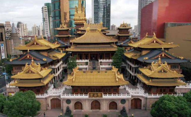 静安寺,初名沪渎重玄寺。相传在西晋建元年(313 年),两尊石佛浮于吴淞江(今苏州河)上,后佛像曾一度供奉于重玄寺。今敦煌石窟中尚存有“石佛浮江”的壁画。