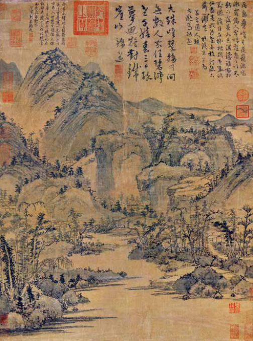 元代四大家黄公望所绘的《九珠峰翠图》,以松江九峰为背景创作而成。松江九峰一般指厍公山、凤凰山、薛山、佘山 、辰山、天马山、机山、横云山、小昆山。