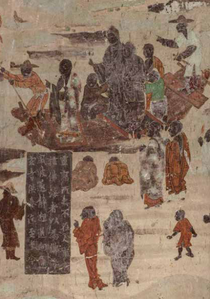 唐 西晋石佛浮江图敦煌莫高窟第323窟主室南壁