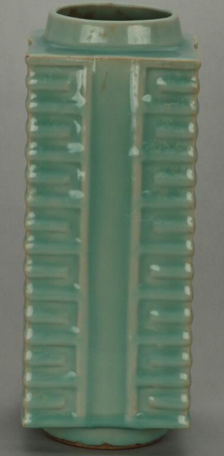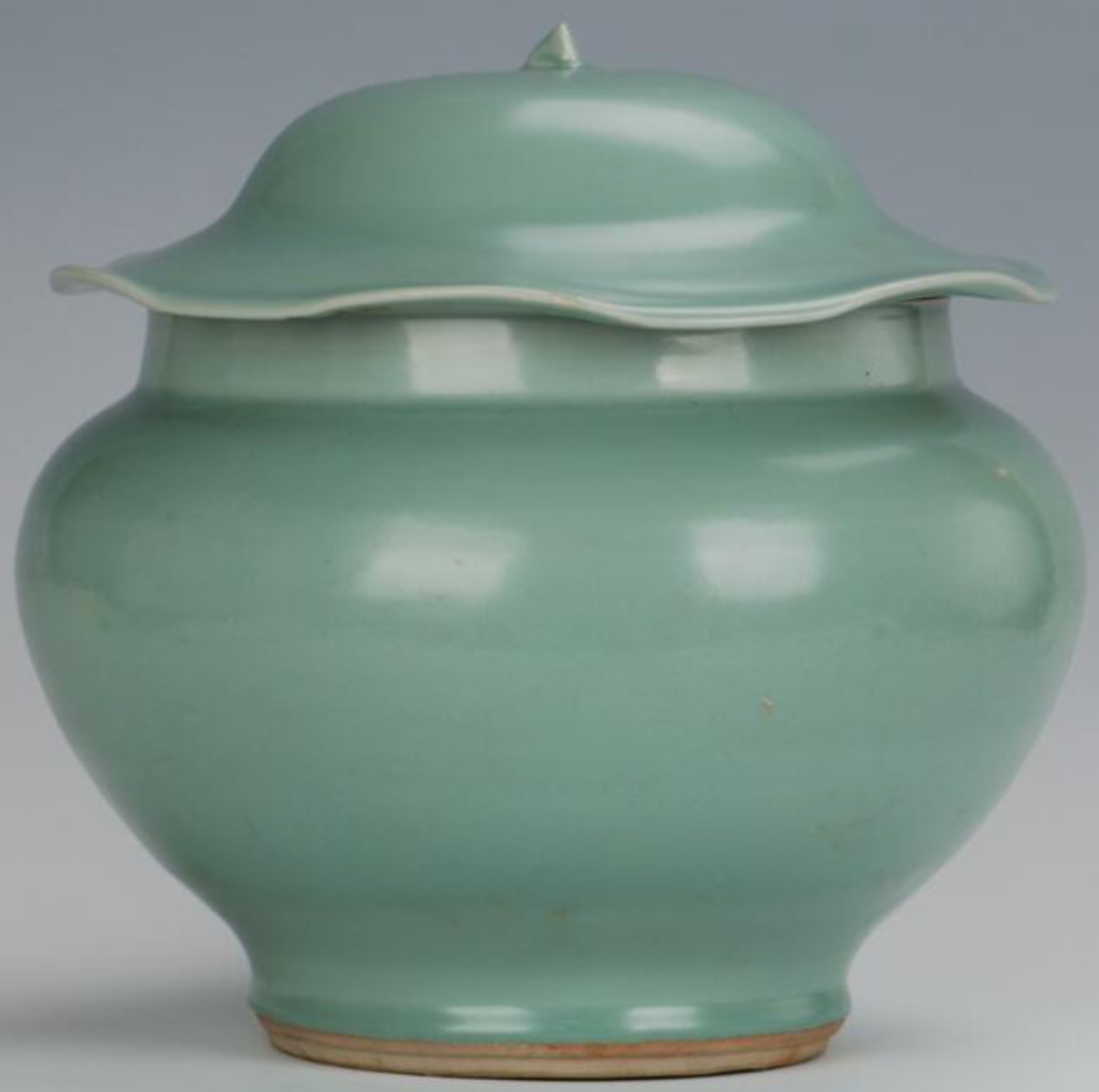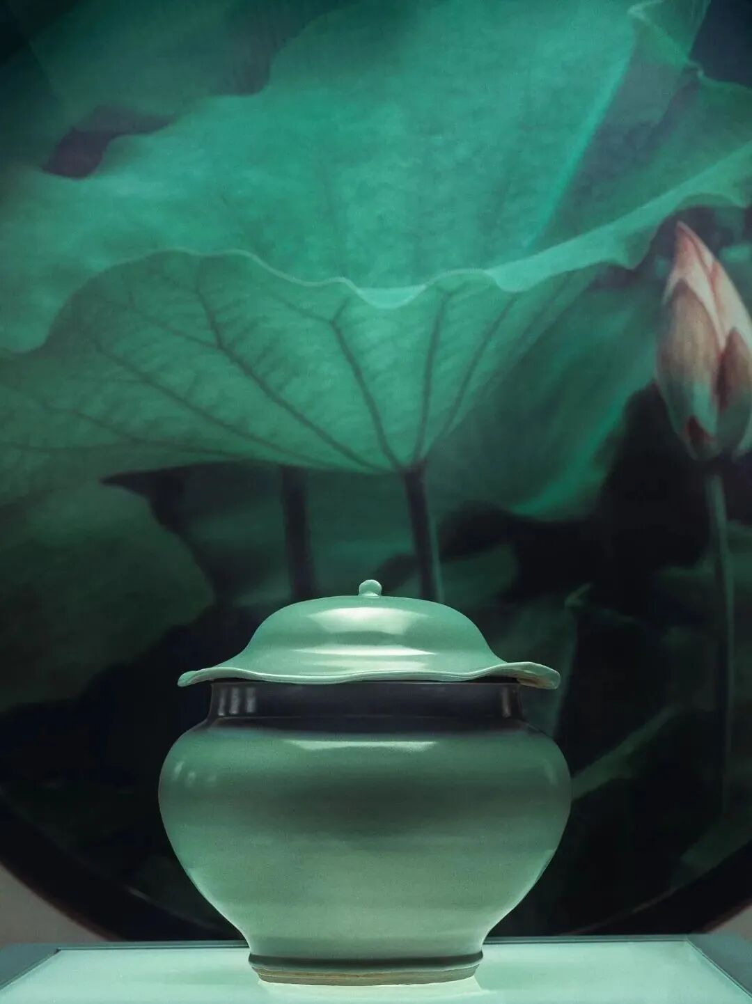 荷叶形盖瓷罐是温润如春水般的青,大一点的梅瓶则是清淡雅致的翠;仿古琮式瓶收藏着温润含蓄的碧,而三足鬲式瓷炉则显出透亮莹润的玉。