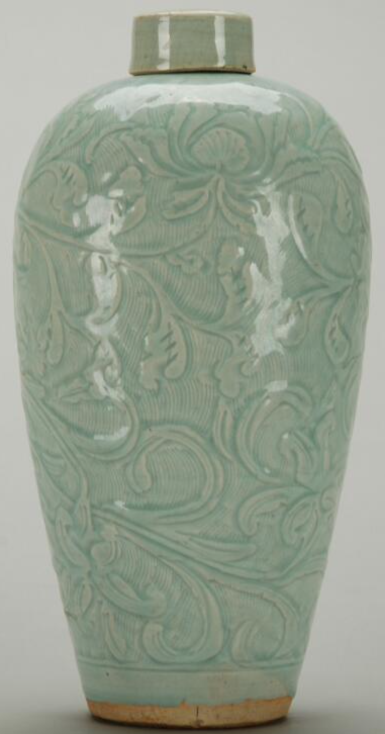 南宋景德镇窑青白釉刻划缠枝花卉纹大瓷梅瓶,图:四川宋瓷博物馆官网