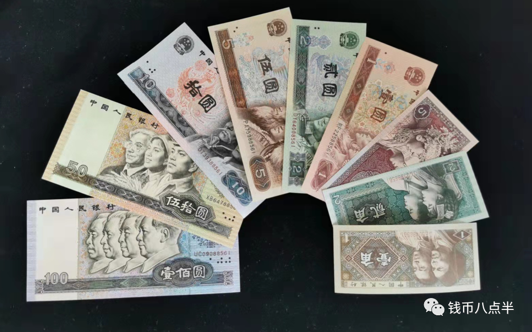 此次我们给大家带来的小全套,包含90年100元、90年50元、90年2元、96年1元及80年的10元、5元、5角、2角、1角纸币各一张,共9张,