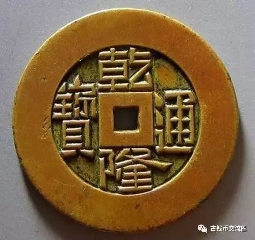 1) 双点通非出头宝万选钱类 这是最常见的一类乾隆通宝大样,祺祥通宝苏称其为大样普及版。可分为许多小版,但差异不明显,没有必要细分。较明显的有宽缘小字、大直径钱(28mm以上)等。