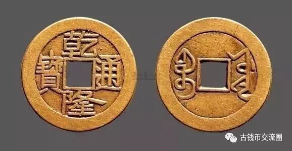 3)双点通出头宝类 背准正书。乾隆通宝大致可细分为目内横、用内横、宽/窄满文、大直径钱等。