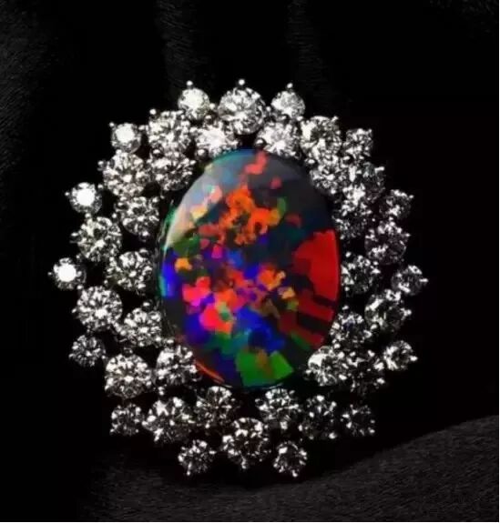 黑欧泊在色调上呈现为深蓝、深绿、深灰、褐色或是黑色的,主要出产于澳大利亚新南威尔士州的莱顿宁瑞奇,是最著名和最贵的欧泊品种,收藏家十分追捧具有特殊图案的黑欧泊。2012年香港春季拍卖会,其中有一个“黑欧泊原石戒指”300万起拍,最后以380万被人收进囊中。