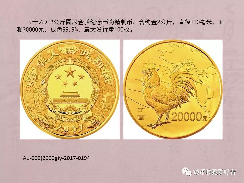 1、续发金币5种(1公斤梅花形-2枚、1/10盎司普制-4枚、1/10盎司彩色-5枚、1/2盎司扇形普制-7枚、5盎司方形-7枚),共计25枚;