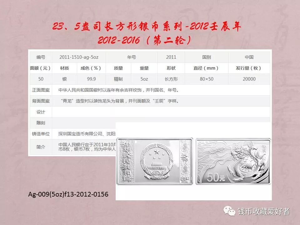 2、续发银币3种(1盎司普制银币-4枚、1盎司彩色银币-5枚、1盎司扇形普制银币-7枚、5盎司长方形银币-7枚、1公斤银币-9枚),共计32枚;