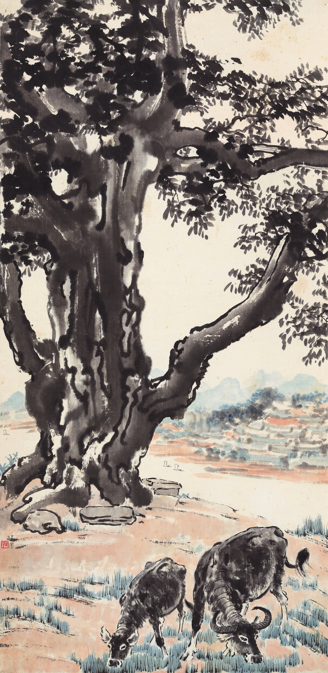 徐悲鸿 1895-1953 榕树双牛