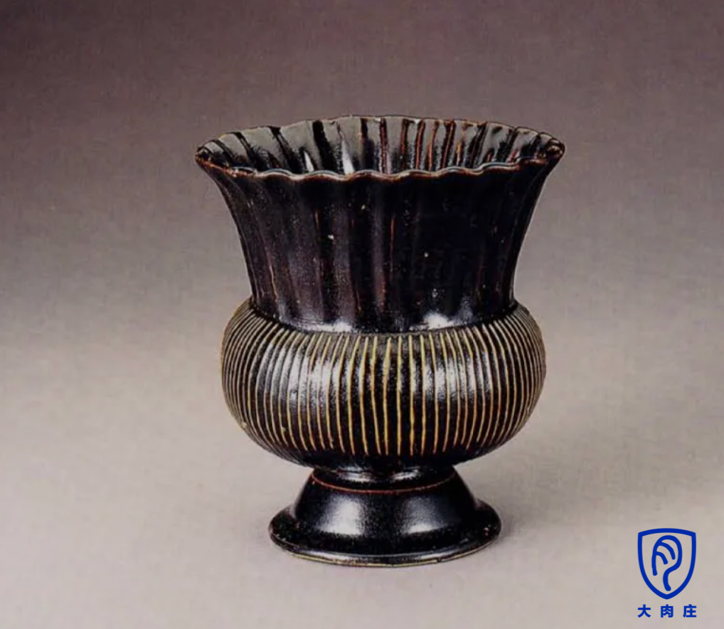 最后呈现的效果特别有现代家具器物的设计感,日本的茧山龙泉堂和其他日本藏家收录有这种线条纹黑釉花口瓶。