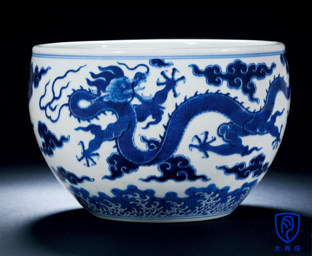 所以这种乾隆云龙纹卷缸应当是复刻明代嘉靖的产物,青花发色艳丽,双龙穿梭云中,气势逼人,预告片占几秒没毛病~