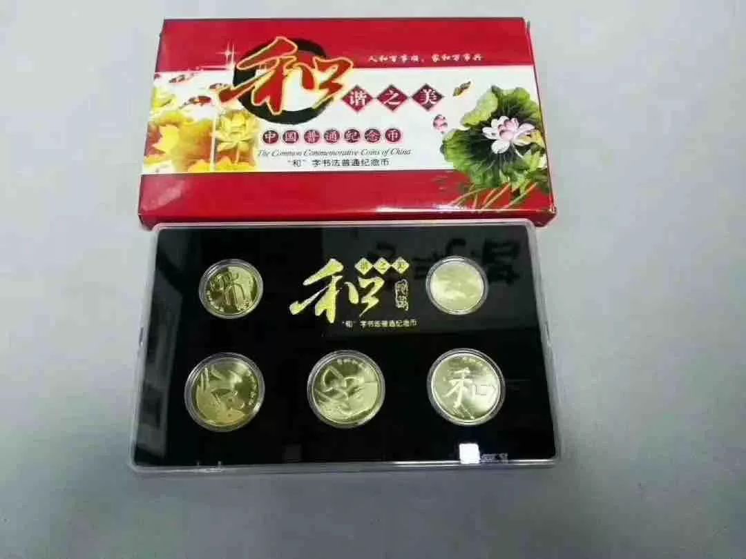 2009年至2017年中国人民银行发行的“和”字书法系列普通纪念币,共5枚。发行时间跨服长,从开始发行到结束发行用了9年的时间。 这五枚纪念币的背面主景图案分别是篆、 隶、行、草、楷书法的和字,书法可是我国一个传统艺术。和字币把中国传统的书法文化与纪念币相结合,给人一场视觉盛宴。从这款纪念币上面看出了我国书法艺术的精湛,也让更多人领略到了书法的魅力。 和字首先寓意“和平”,“家和万事兴”的题材深受普通大众的喜爱。该系列龙头为和一篆书和。