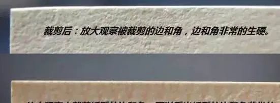 未被裁剪的纸币边和角都非常自然,裁剪后纸币的边和角非常生硬,纸币的角过于尖锐,尤其纸币的角没有“过度”,这种“过度”是永远无法模仿的。但纸币边、角的这种“过度”需要长时间的观察才能体会到其中的奥妙。如下图。