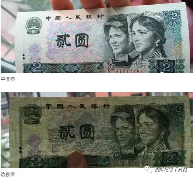 二版、三版、四版人民币的表面在印刷过程中币面留下一层油墨。纸币下水整形后,这层油墨就失去了光泽。