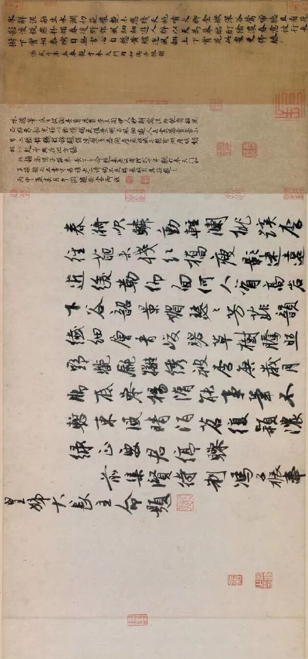 如此一幅集厚重的历史价值与精巧的艺术价值于一身的山水画作品,自然受到后人的追捧和喜爱。《游春图》自581年问世,迄今1400多年,风风雨雨,辗转流传,几度收归皇宫,几度流落民间。从画上的题跋便可知有哪些人留下了“爱的印迹”。