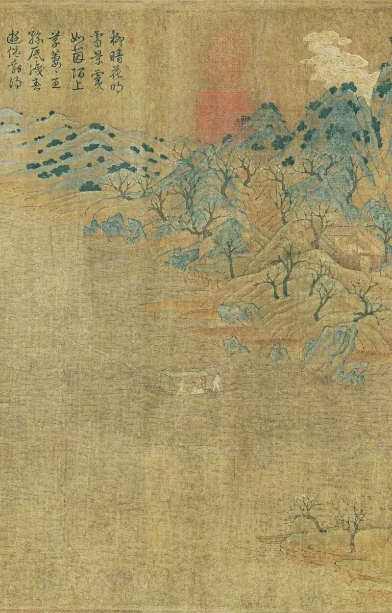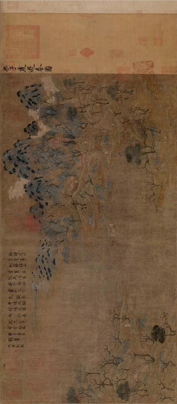 宋徽宗这位不爱江山爱丹青的皇帝,自然不会放过《游春图》。他在位时广收文物和书画,充实翰林图画院。《宣和画谱》收录有展子虔作品,其中就包括《游春图》,并有评语曰,“展子虔画台阁,与江山远近之势尤工,有咫尺千里之趣。”