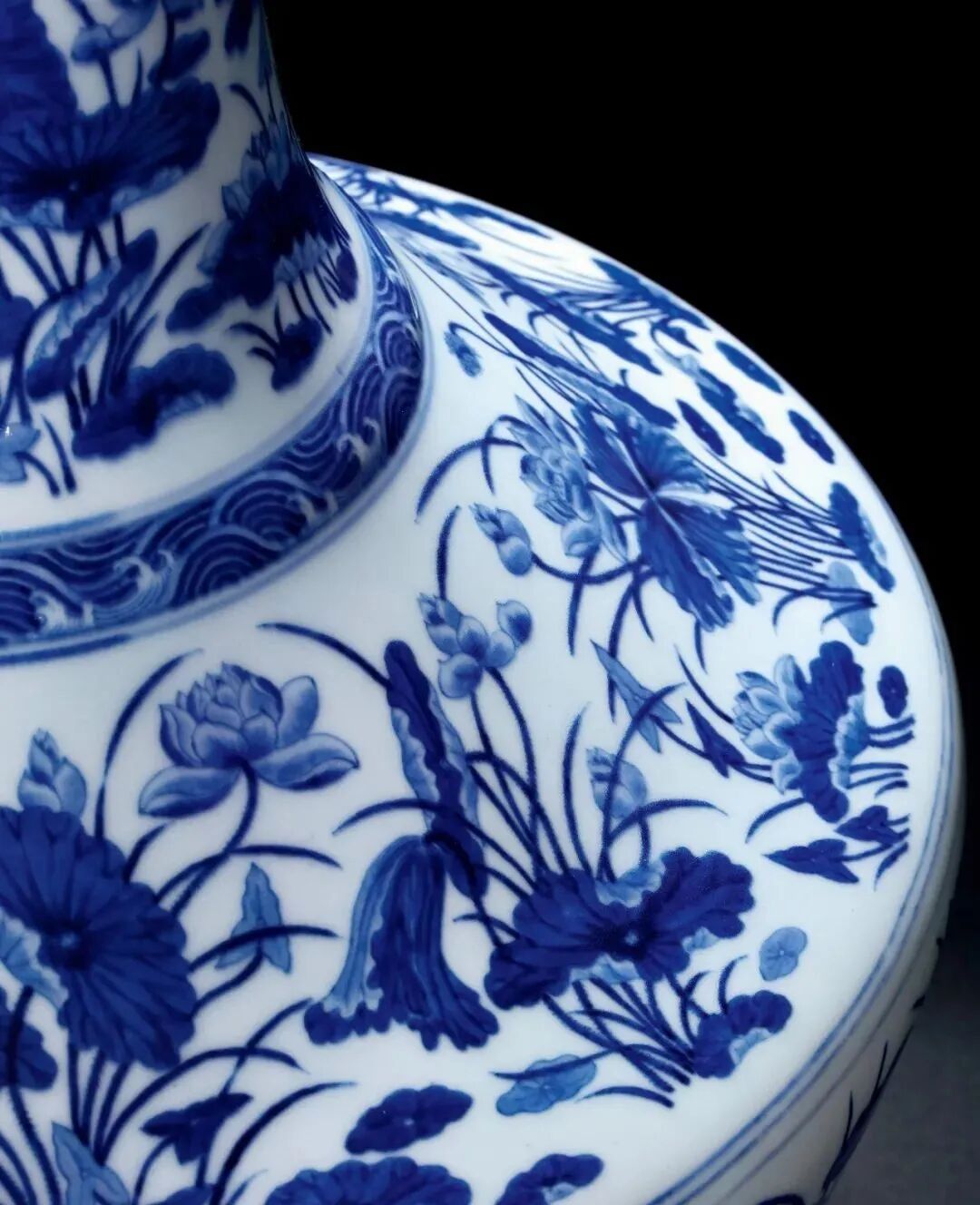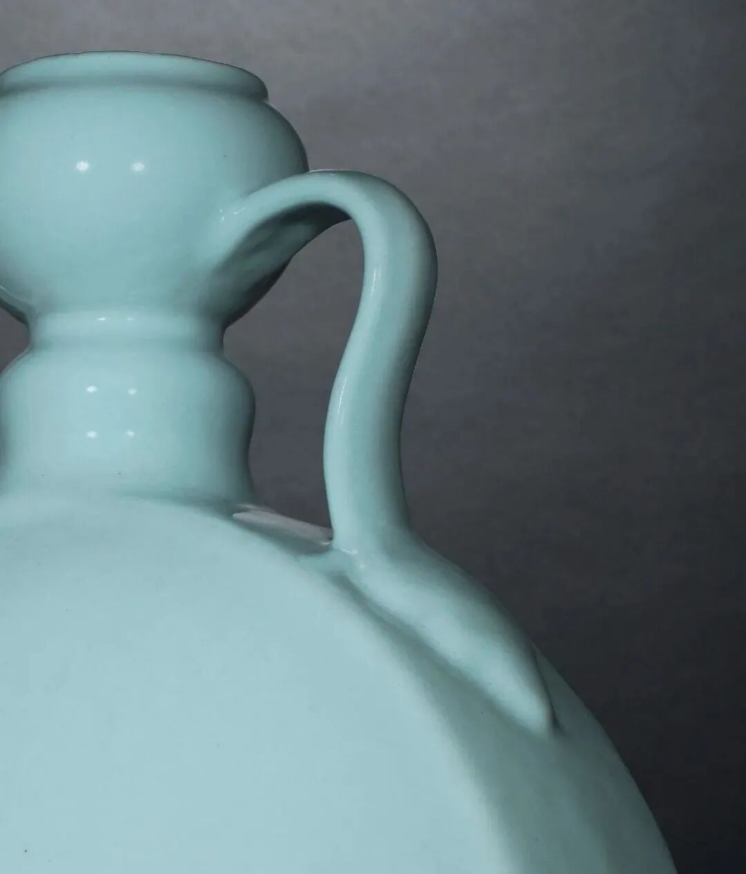 龙纹作于圆器之上,相比常见扁壶平面器,需更高超和娴熟的技艺才能得以完成,今见之例弥足珍贵。参考一例,清乾隆御制青花釉里红云龙纹大天球瓶,香港静观堂及十面灵璧山居旧藏,售于保利2019年10月7日,编号3324,成交价港币5664万。