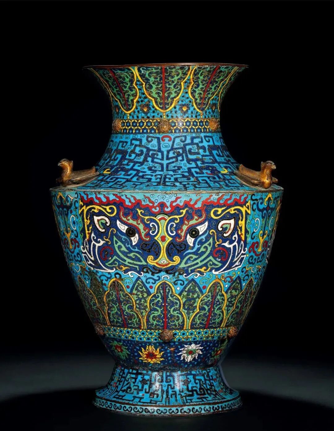 清早期 铜胎掐丝珐琅饕餮纹飞鸟罍