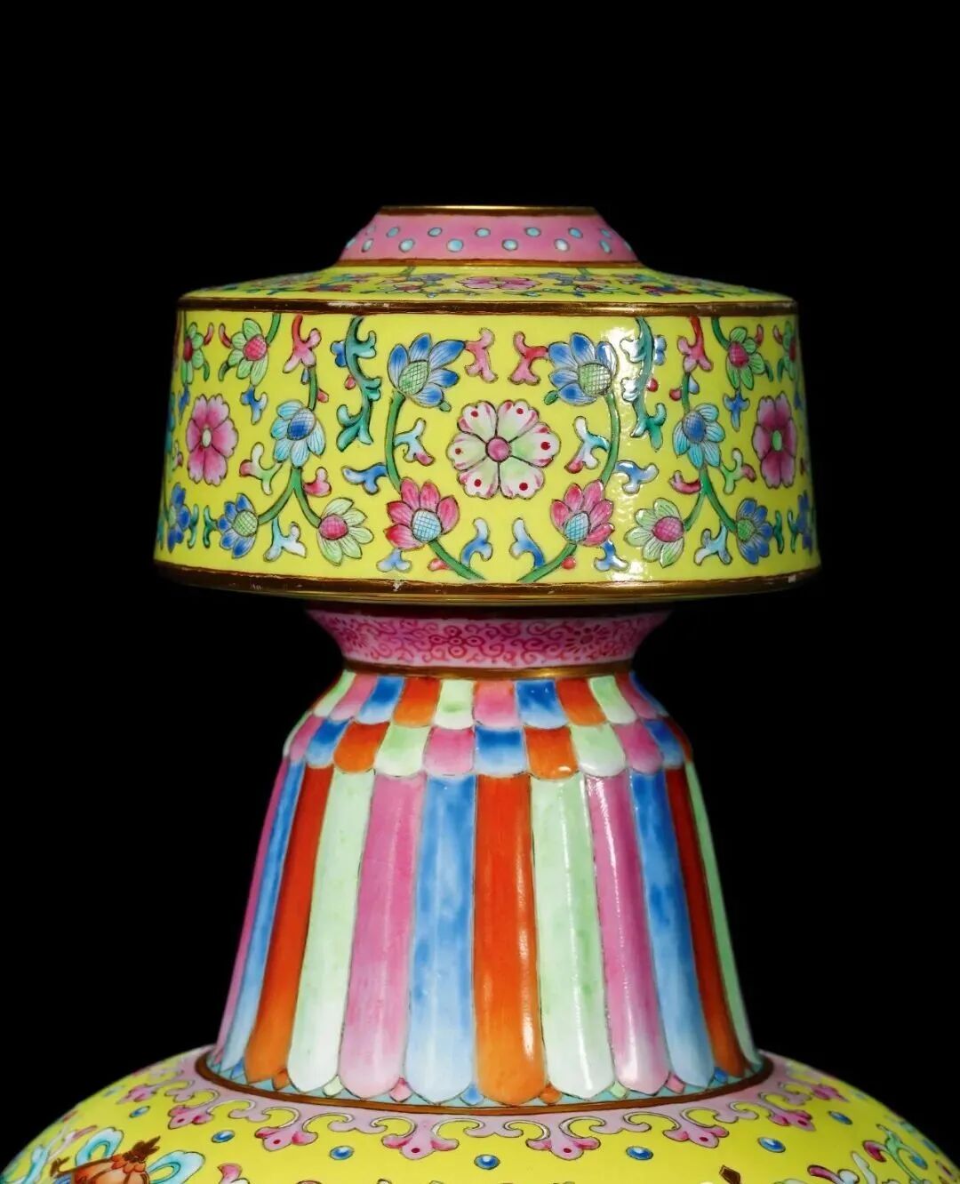 清乾隆 黄地粉彩缠枝莲托八吉祥纹贲巴瓶