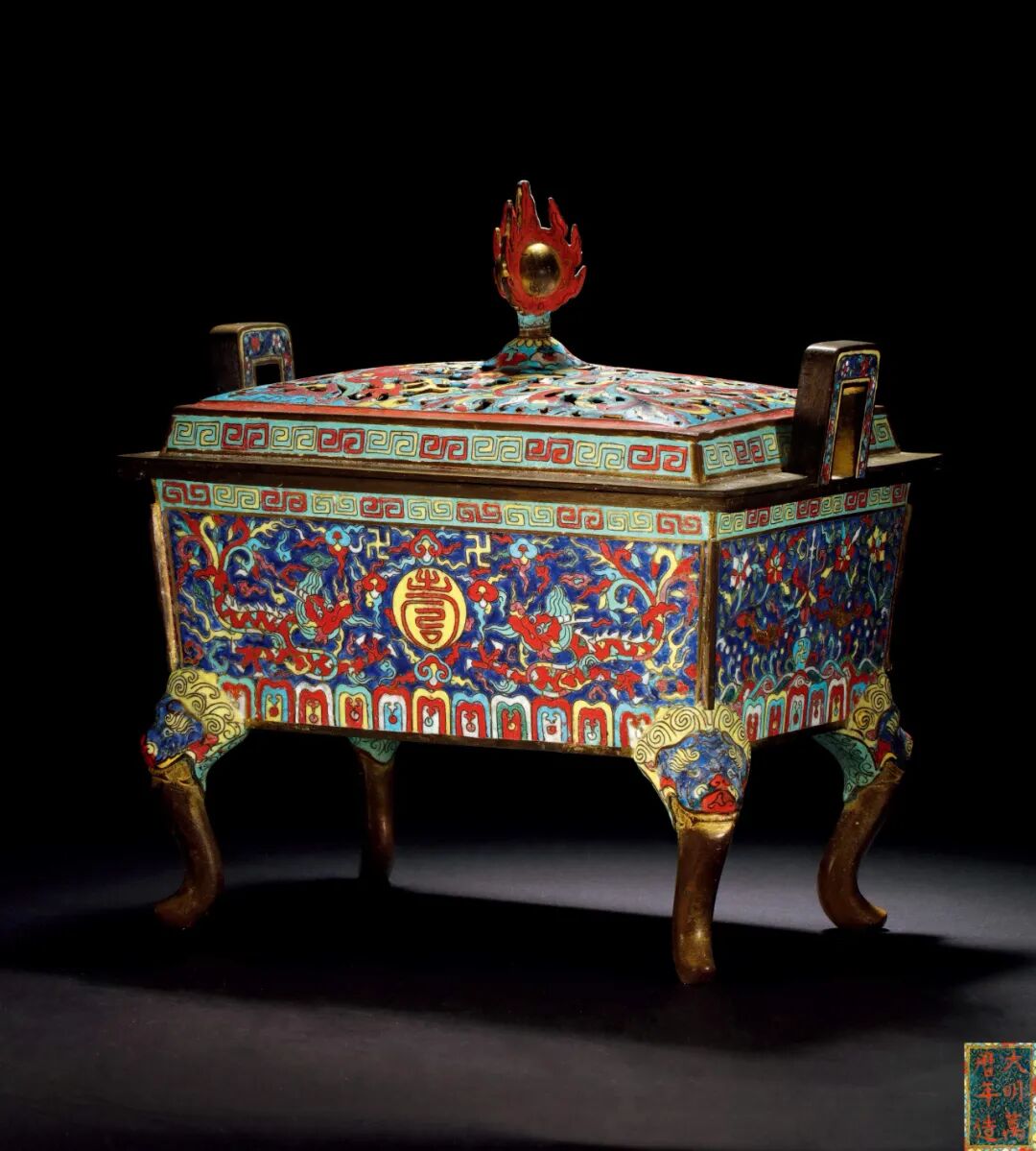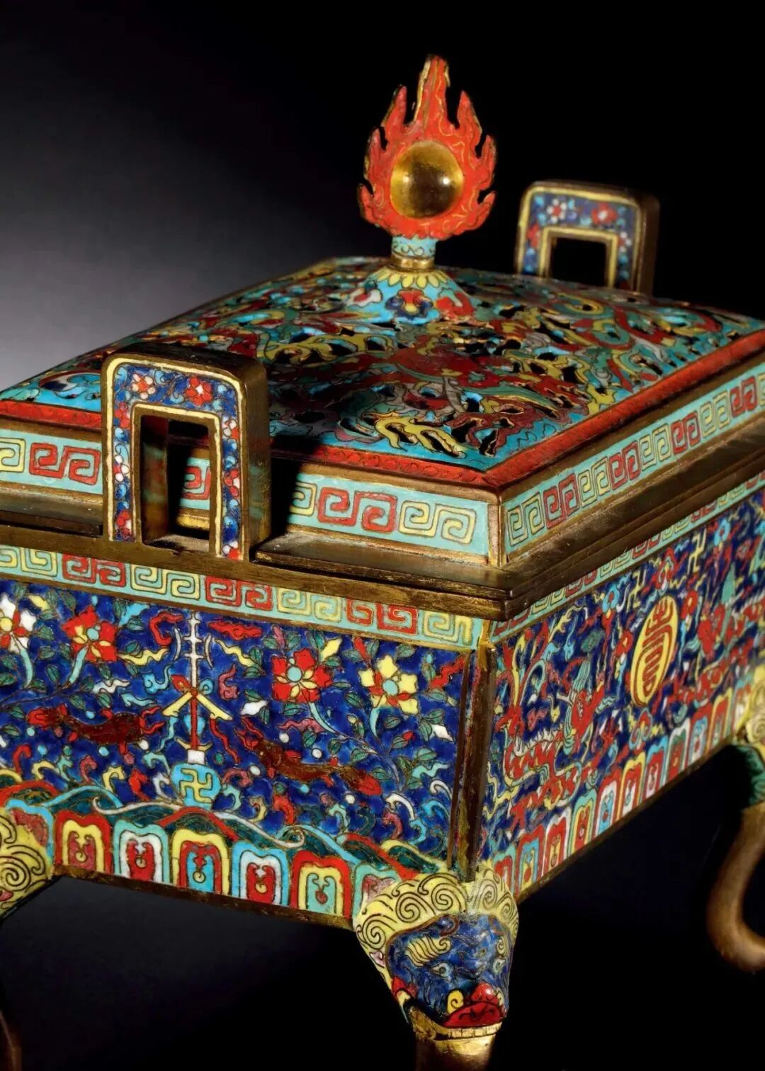 明万历 铜胎掐丝珐琅云龙捧寿纹盖炉