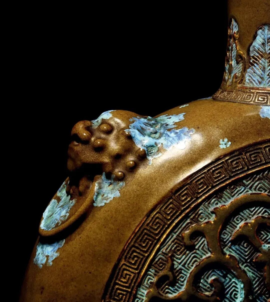 清乾隆 茶叶末釉点古铜彩铺首抱月瓶