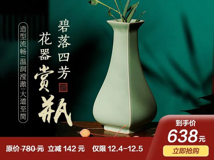 12月4-5日,此款龙泉青瓷「碧落四芳·花器赏瓶」限时优惠中......
