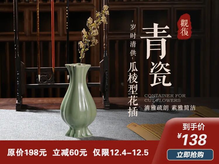 12月4-5日,此款「岁时清供·青瓷瓜棱形花插」限时优惠中......