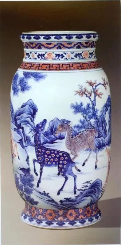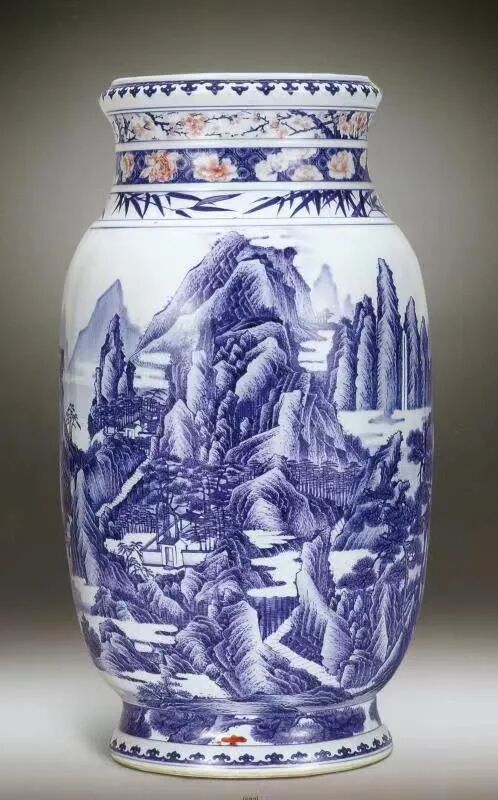 清乾隆青花釉里红“匡庐图”灯笼瓶