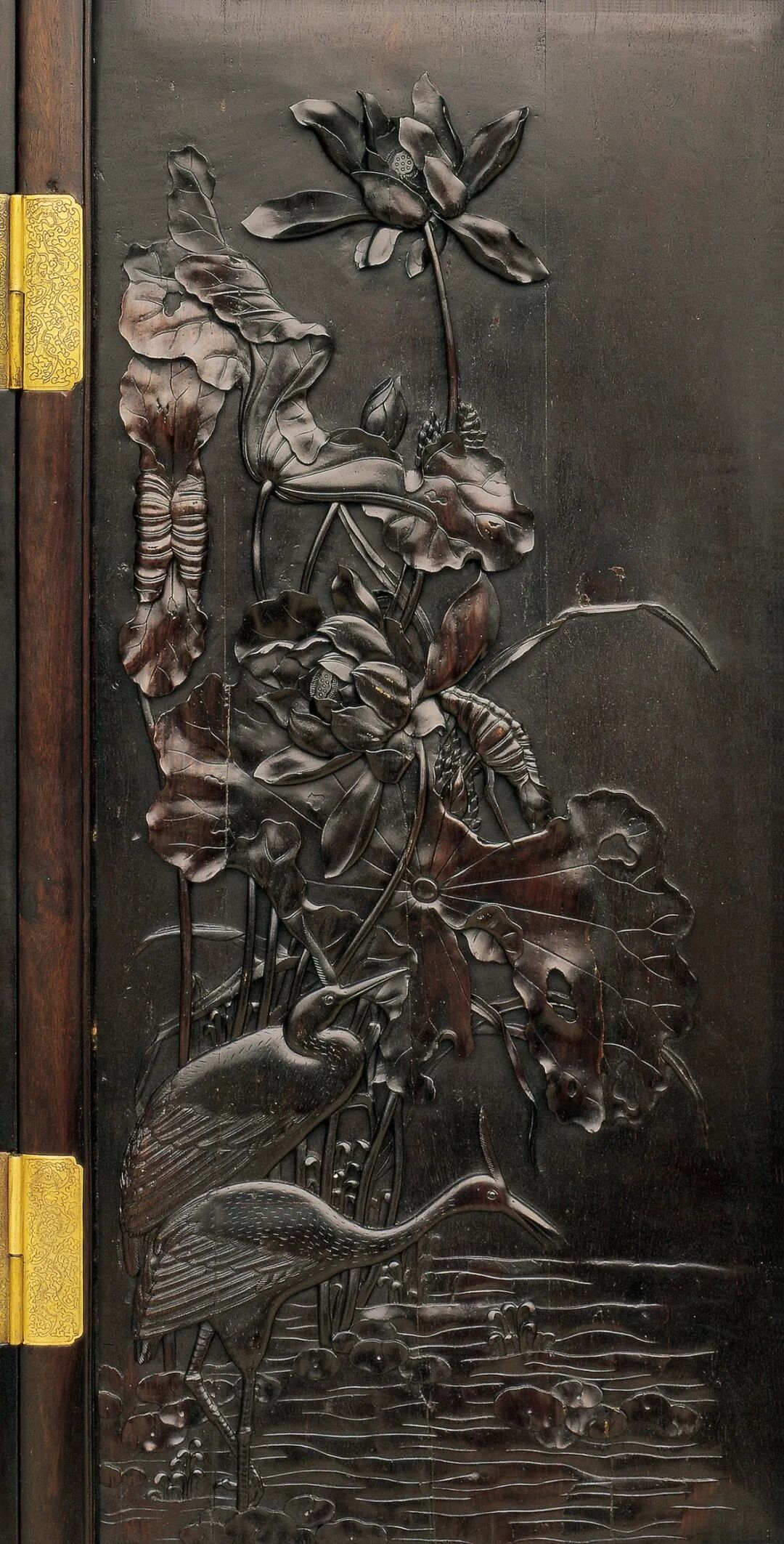 清乾隆 紫檀花鸟纹大四件柜(一对)
