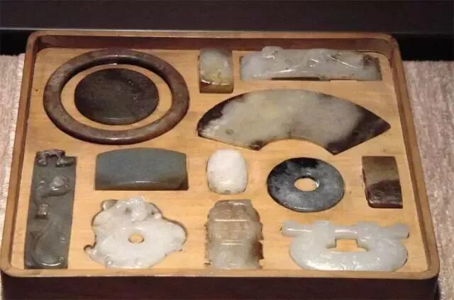 值得一提的是,托盘里选的玉器都是片状的,托盘底部按照每一个玉器的外部轮廓,分别挖出凹槽。![]()
