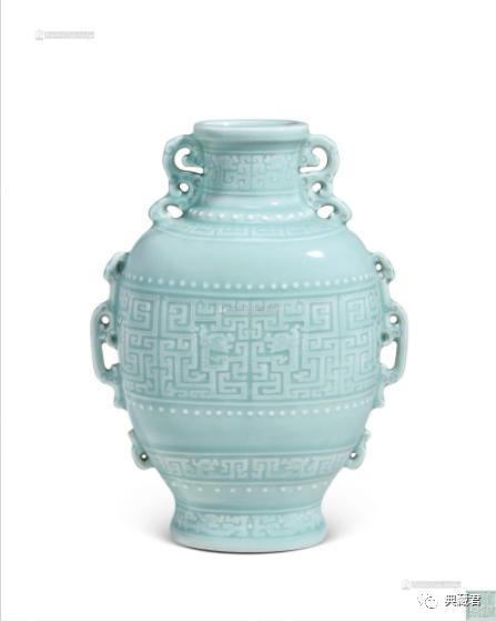 清乾隆 粉青釉模印夔龙纹双耳扁壶