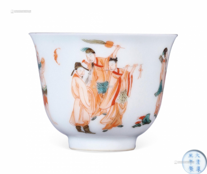 清康熙 矾红八仙人物纹杯