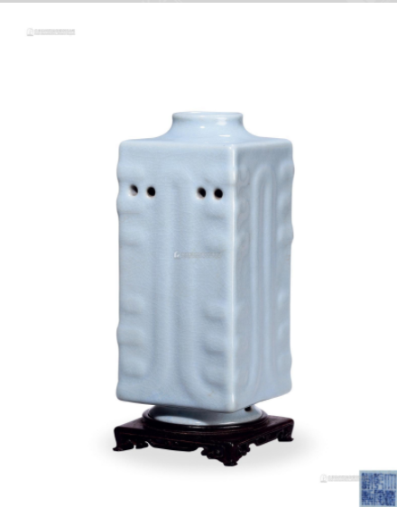 清乾隆 粉青釉印万寿菊三孔小花插
