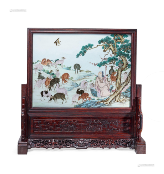 清乾隆 洋彩「苏武牧羊」图瓷板座屏