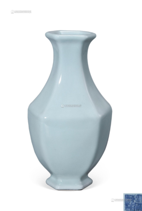 清乾隆 仿汝天青釉六方小瓶