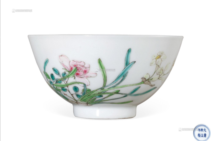 清雍正 粉彩水仙月季小碗