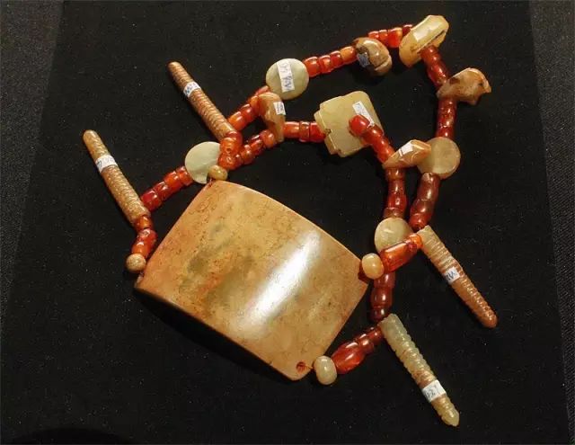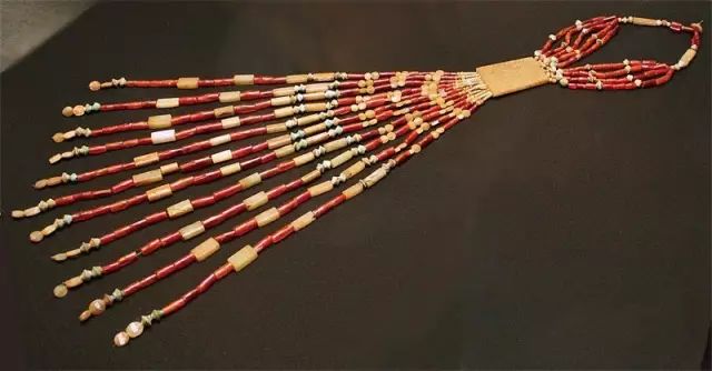随葬的珠串饰物中,一串由38颗煤精石龟形珠、14颗煤精石圆珠和2件造型各异的龙形觽玉佩饰组成的煤精石串珠,排列巧妙,制作精良,格外引人瞩目。古人在两千多年前,就懂得把煤精石当作饰物,这个发现或许会成为明天的商人说服时尚人士的最好广告用语。