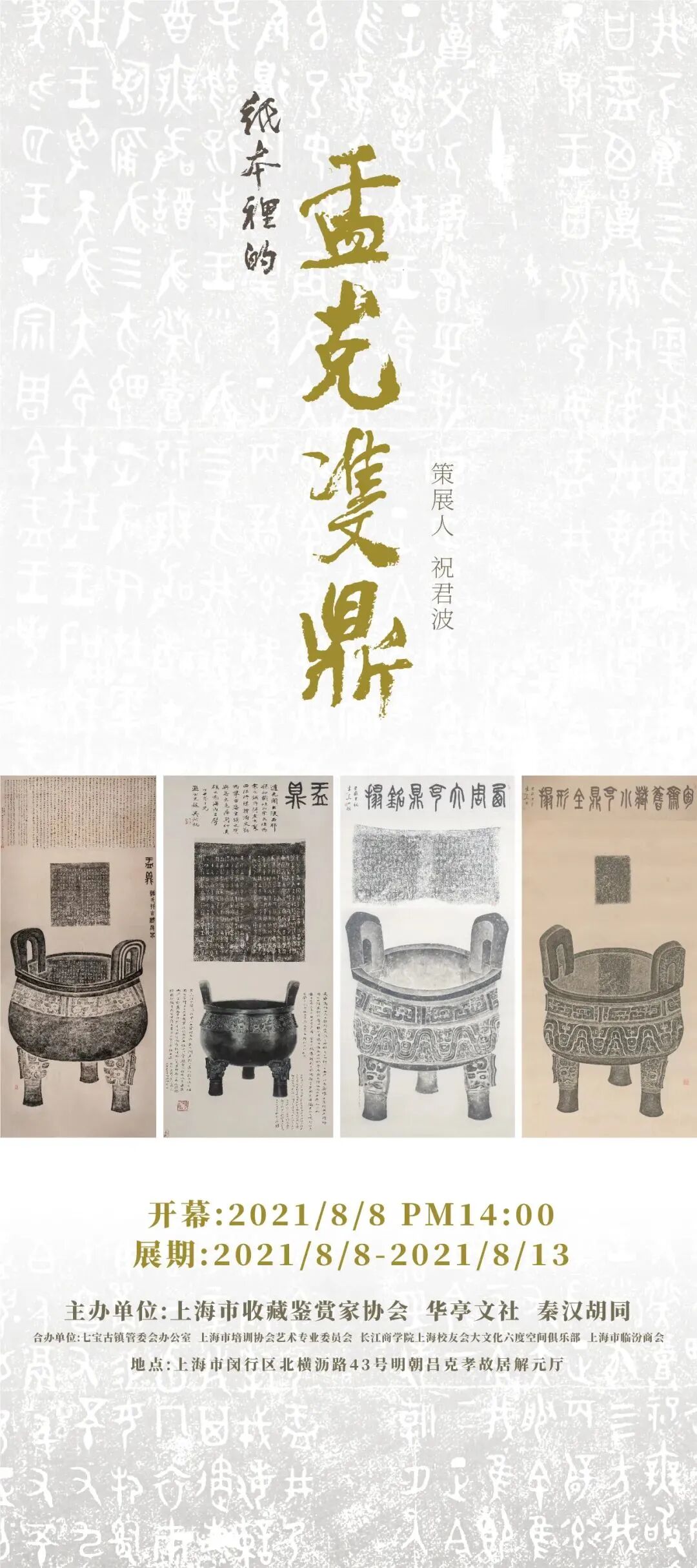 此前,“秦汉胡同”联合“华亭文社”、“上海市收藏鉴赏家协会”,举办“纸本里的盂克双鼎”展览,以盂克二鼎百余年出土及流传经历,共计“文献资料”、“潘氏朋友圈的金石艺术”、“盂克双鼎全形艺术”等三个篇章,再现碑帖之传拓艺术与金石文化之美。