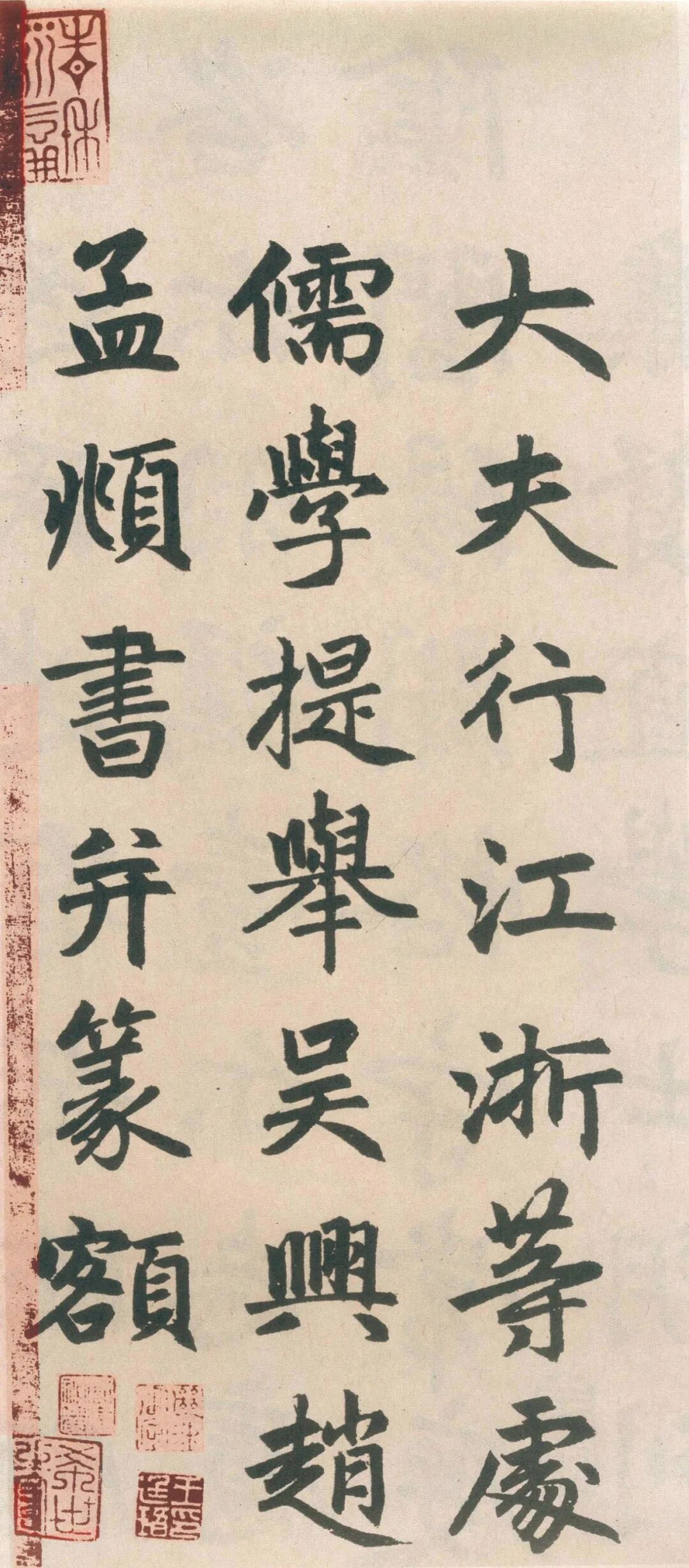 所写碑版甚多,圆转遒丽,世称“赵体”。相传他能日作楷书万字,“下笔神速如风雨”。赵氏楷书中有不少上乘之作,如《三门记》结体宽博深稳,运笔酣畅圆润,最适合当字帖。赵氏传世作品以行楷居多,大多用笔精到,结字严谨,如《赤壁赋》堪称经典之作。