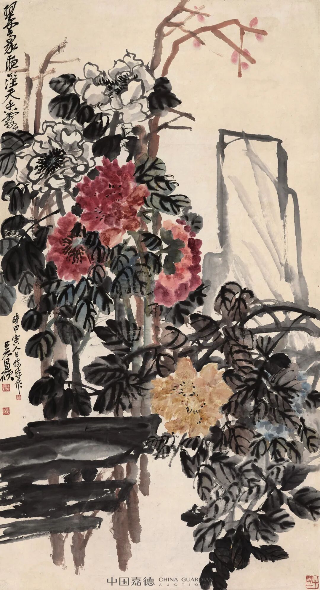 钤印:俊卿大利、昌硕、聋、八十开一"