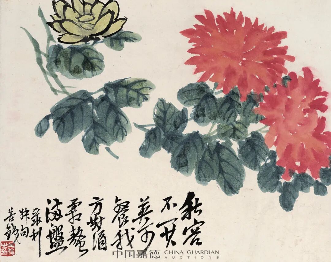 (二)小凤招邀下碧城,仙乎幻作此花身。草堂近日饶秋兴,细碎闲花为写真。录井南老人句。昌硕。