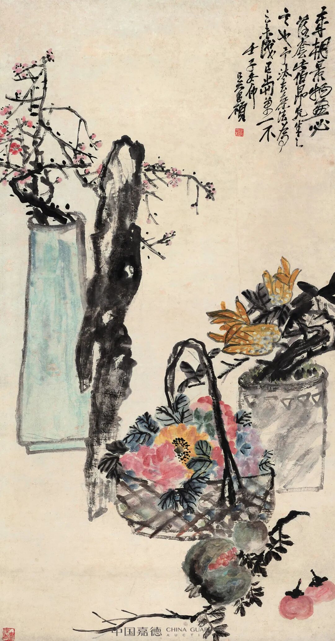 题识:岁朝景物画必落俗套,此伯昂先生之言也。予汰去旧法为之,未识有当万一不。壬子冬仲,吴昌硕。