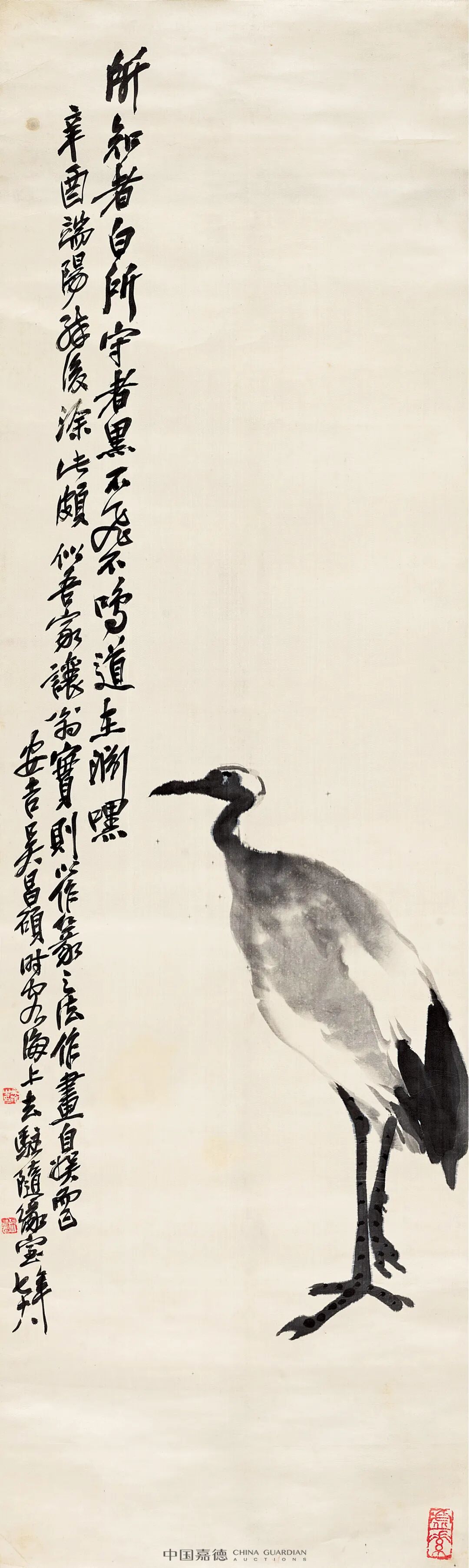 吴东迈(1885-1963)题签:立鹤。先严昌硕府君精缋,癸酉(1933年)秋张云伯氏装,迈谨题。钤印:吴